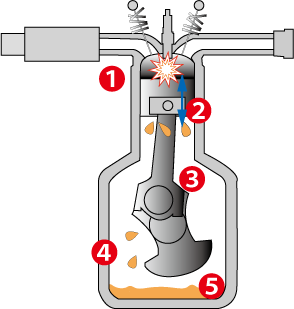 エンジンは燃焼や回転運動によって、様々な汚れが発生し、この汚れが溜まると、エンジンの性能を低下させるだけでなく、エンジンの寿命の低下にも影響します。エンジンオイルは、これらの汚れが特定の場所に留まらないように自ら汚れを吸着したり、分散することもできます。